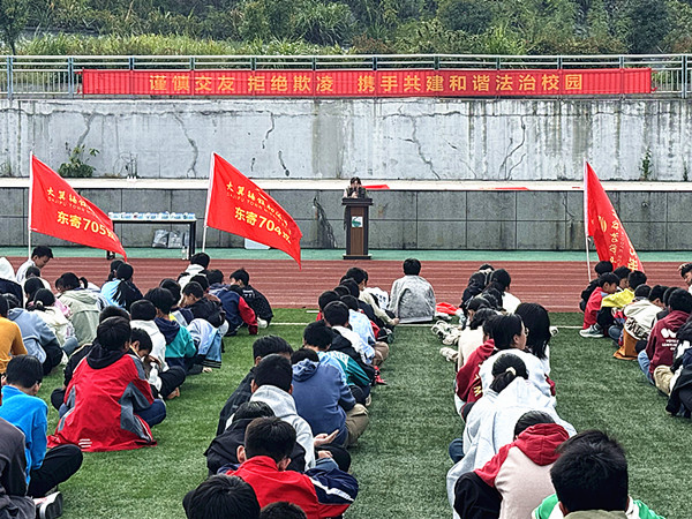 “知法于心,守法于行,交友有度,依法自護!”下午的操場上,陽光溫柔地灑在一張張青春的笑臉上。伴隨著這句鏗鏘有力的普法口號,活動正式拉開帷幕。本次法治宣講以“慎交友·防欺凌”為主線,內(nèi)容涵蓋線下交友、網(wǎng)絡(luò)交友的法律風(fēng)險防范,以及如何依法應(yīng)對校園欺凌等。法治宣講人結(jié)合發(fā)生在孩子們身邊的真實案例,將《未成年人保護法》《預(yù)防未成年人犯罪法》講解得生動易懂。有人因輕信陌生網(wǎng)友險些落入圈套,也有人因交友不慎被帶入不良圈子。同學(xué)們聽得聚精會神,不時沉思點頭,原本抽象的法律條文,在一個個鮮活故事中變成了生活中的警示與提醒。