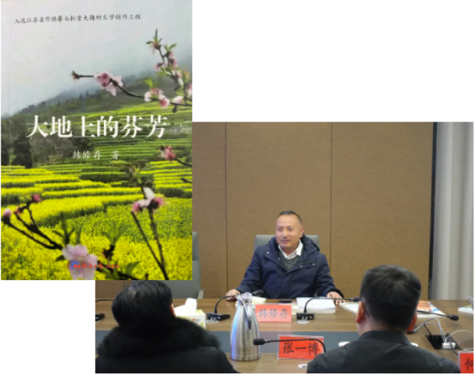 會上,韓修存部長就其作品《大地上的芬芳》等大地三部曲的創(chuàng)作時間、歷史背景、文學(xué)體裁、主要內(nèi)容等做了詳細介紹,并對其創(chuàng)作理念、靈感來源、創(chuàng)作經(jīng)驗等進行了熱情分享。該書真實記錄了其任市委駐宿豫區(qū)幫扶工作隊第一書記時深入一線,扎根農(nóng)村,走村串戶的親身經(jīng)歷,記錄了駐村工作隊助推脫貧攻堅和鄉(xiāng)村振興的生動感人故事,為宿遷市的駐村幫扶工作提供了一定的指導(dǎo)和借鑒,調(diào)動了各縣(區(qū))農(nóng)業(yè)農(nóng)村部門投身鄉(xiāng)村振興事業(yè)的積極性和創(chuàng)造性,推動了駐村幫扶工作再上新臺階。
