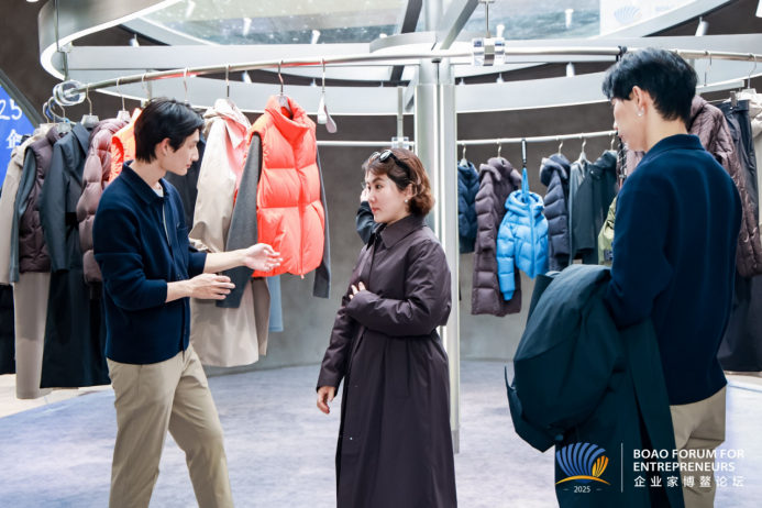 作為論壇的“老朋友”與中國(guó)羽絨服行業(yè)的領(lǐng)軍者,今年波司登不僅攜新質(zhì)生產(chǎn)力實(shí)踐成果參與主論壇核心議題探討,更將融合時(shí)尚美學(xué)與現(xiàn)代科技的波司登高級(jí)產(chǎn)品線AREAL快閃店搬至現(xiàn)場(chǎng),以時(shí)尚功能科技基因打造沉浸式文化體驗(yàn)空間,以匠心演繹品質(zhì),用科技賦能時(shí)尚,在南海之濱開啟了一場(chǎng)兼具溫度與風(fēng)度的“美學(xué)之旅”。
