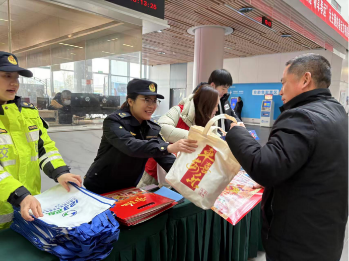 活動現(xiàn)場,執(zhí)法人員面向廣大旅客深入開展法治宣傳教育工作,廣泛普及安全出行相關(guān)知識,同步發(fā)放普法宣傳材料與春節(jié)慰問物資。