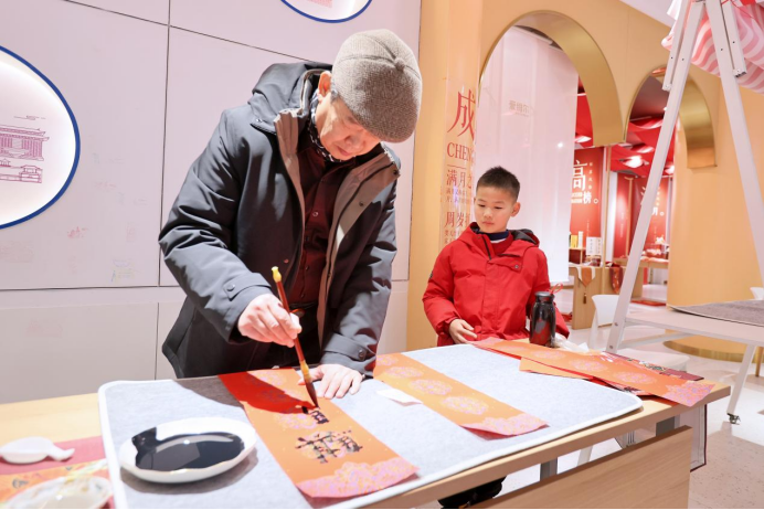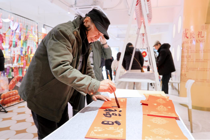 《中華英才》半月刊網(wǎng)江蘇訊(趙偉 郝好) 2026年2月7日下午,位于蘇州市相城區(qū)陽澄湖鎮(zhèn)的愛維爾蛋糕密碼館內(nèi),一場別開生面的“蘇式年味”體驗活動正在上演。蘇州知名書畫家朱文輝、楊建華、許寶華三位先生親臨現(xiàn)場,揮毫潑墨,為市民書寫春聯(lián)、贈送“?!弊?,將傳統(tǒng)書法藝術(shù)與烘焙文化巧妙融合,營造出濃厚的節(jié)日氛圍。