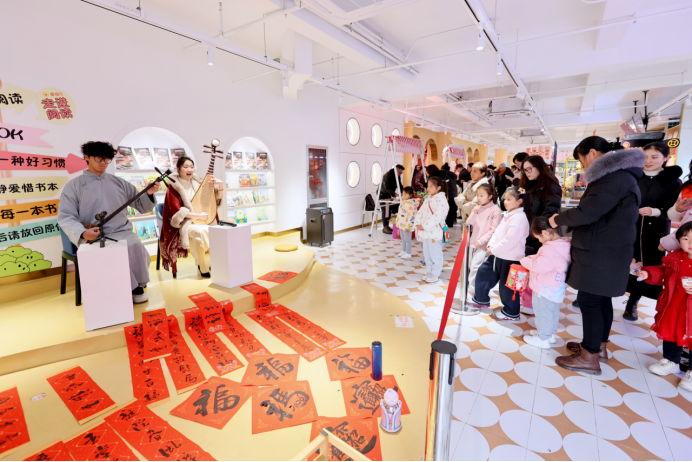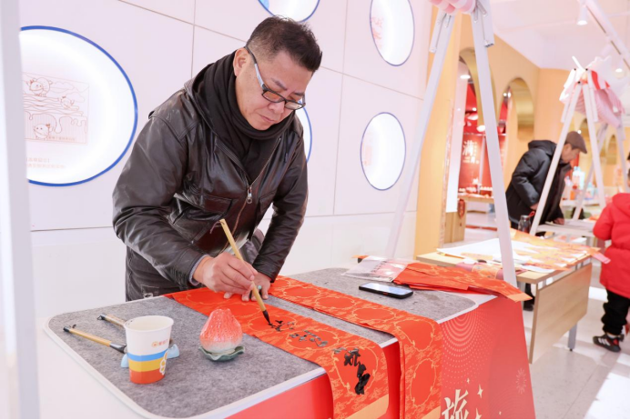 活動現(xiàn)場,墨香四溢,紅紙翻飛。三位書法家筆走龍蛇,一幅幅寓意吉祥的春聯(lián)和形態(tài)各異的“?!弊周S然紙上,引得現(xiàn)場市民紛紛駐足欣賞、排隊領(lǐng)取。除了傳統(tǒng)的書法體驗,愛維爾還精心設(shè)置了甜品品鑒區(qū),精致的蛋糕、面包與現(xiàn)磨咖啡香氣交織,讓市民在感受傳統(tǒng)文化的同時,也能品味到現(xiàn)代烘焙的甜蜜滋味。此外,經(jīng)典的蘇州評彈表演也為現(xiàn)場增添了濃郁的江南風(fēng)情,悠揚的曲調(diào)與熱鬧的互動相得益彰。