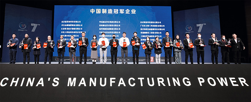 在第七屆中國制造強(qiáng)國論壇上榮獲中國制造冠軍企業(yè)(右二為鄭光樂)