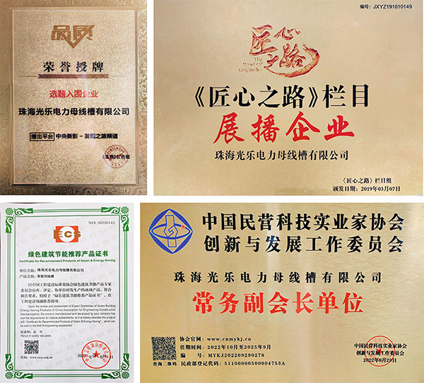 珠海光樂經(jīng)過三十多年的努力,產(chǎn)品的高品質(zhì)受到了市場的認(rèn)可和好評(píng),先后為眾多機(jī)場、地鐵、醫(yī)院、會(huì)展中心、工業(yè)廠房、高層建筑及公建項(xiàng)目所采用。如今的珠海光樂已成為《低壓母線槽應(yīng)用技術(shù)規(guī)程》的主編單位,被2022年第七屆中國制造強(qiáng)國論壇評(píng)選為“中國制造冠軍企業(yè)”,被中央電視臺(tái)《匠心》欄目、《品質(zhì)》欄目,雙欄目入選推廣品牌。