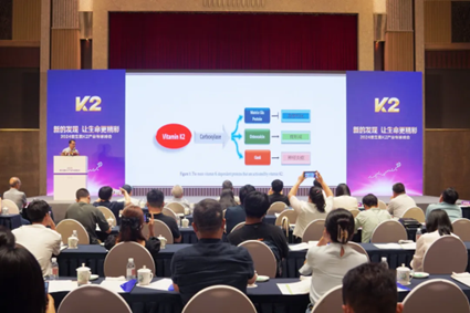 雙駿生物首席科學(xué)家、首席科學(xué)官、董事總經(jīng)理陳杰鵬博士在題為《維生素K2(MK-7)千億產(chǎn)業(yè)生態(tài)》的演講中,通過(guò)綜述大量的科學(xué)文獻(xiàn)全面展現(xiàn)了維生素K2(MK-7)在增加骨密度和維護(hù)血管健康、抗炎癥、防治癌癥等方面的科學(xué)價(jià)值。