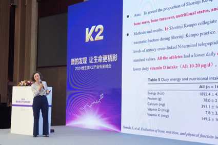中國(guó)醫(yī)科大學(xué)張美俠教授帶來(lái)《維生素K2與運(yùn)動(dòng)營(yíng)養(yǎng)》主題報(bào)告。張教授指出,大量文獻(xiàn)報(bào)道,運(yùn)動(dòng)員普遍缺乏維生素K2。補(bǔ)充維生素K2可以改善運(yùn)動(dòng)員的骨骼和肌肉健康、改善運(yùn)動(dòng)表現(xiàn),還可促進(jìn)因劇烈運(yùn)動(dòng)造成的肌肉損傷、肝臟和腎臟功能的恢復(fù)。這些研究提示,運(yùn)動(dòng)營(yíng)養(yǎng)可能是維生素K2品類應(yīng)用的新分支。