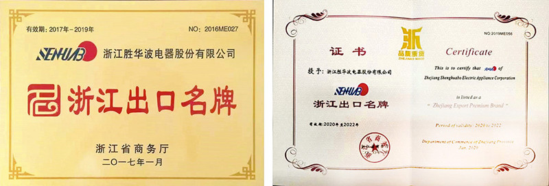 浙江勝華波電器股份有限公司被評為浙江出口名牌企業(yè)