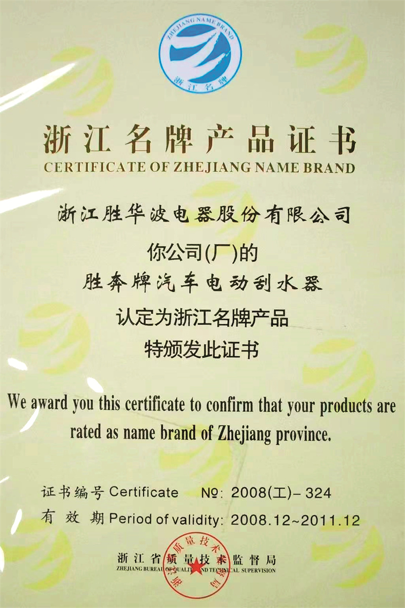勝奔牌汽車電動刮水器被認(rèn)定為名牌產(chǎn)品
