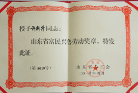榮獲山東省富民興魯勞動獎章