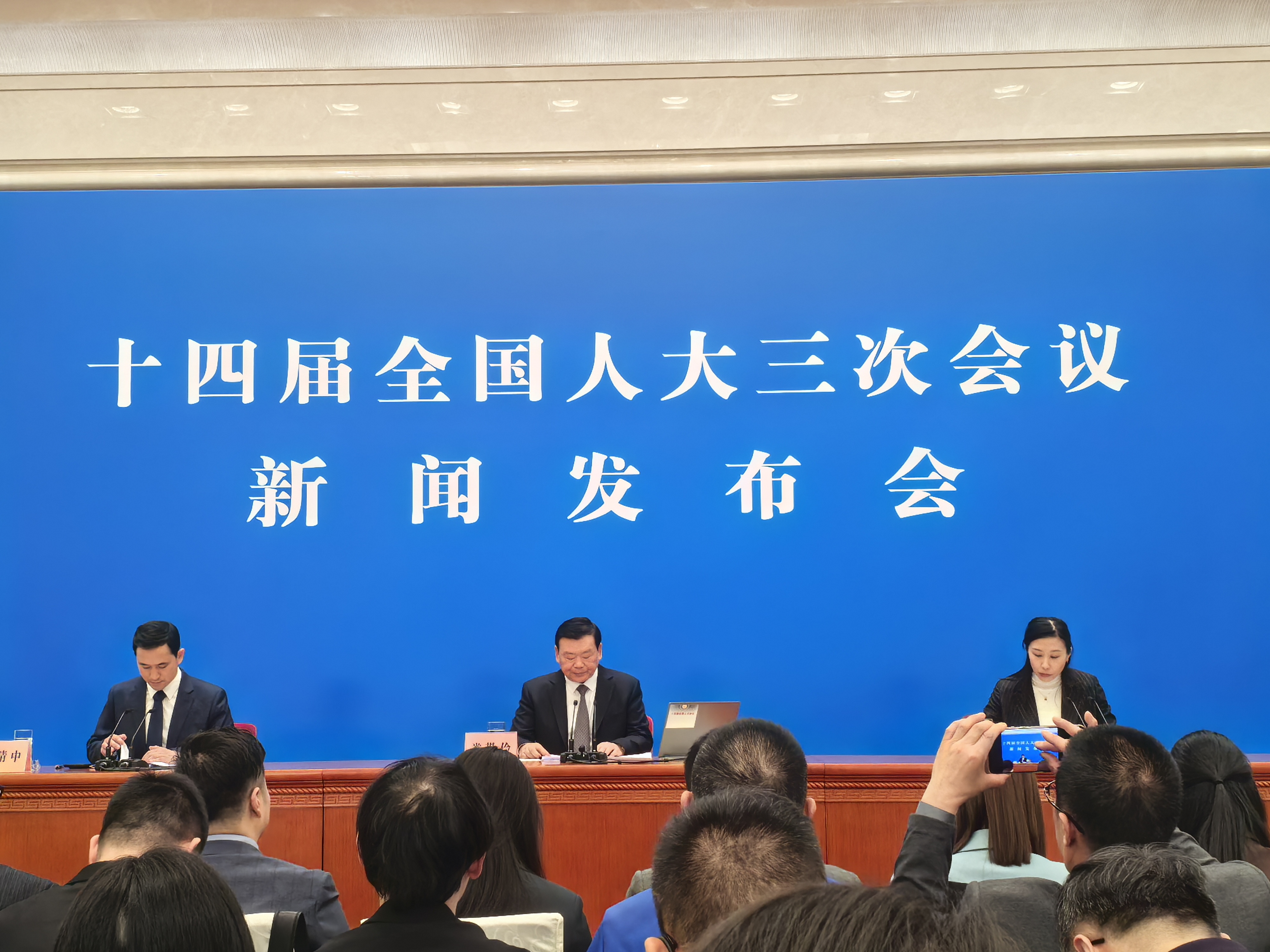 十四屆全國人大三次會議新聞發(fā)言人婁勤儉說:“大會預備會議通過了大會議程,十四屆全國人大實有代表2929名,目前已有2893名代表向大會報到。大會的各項準備工作已全部就緒,這次大會將于3月5日上午召開,11日下午閉幕,會期7天,共安排三次全體會議”。