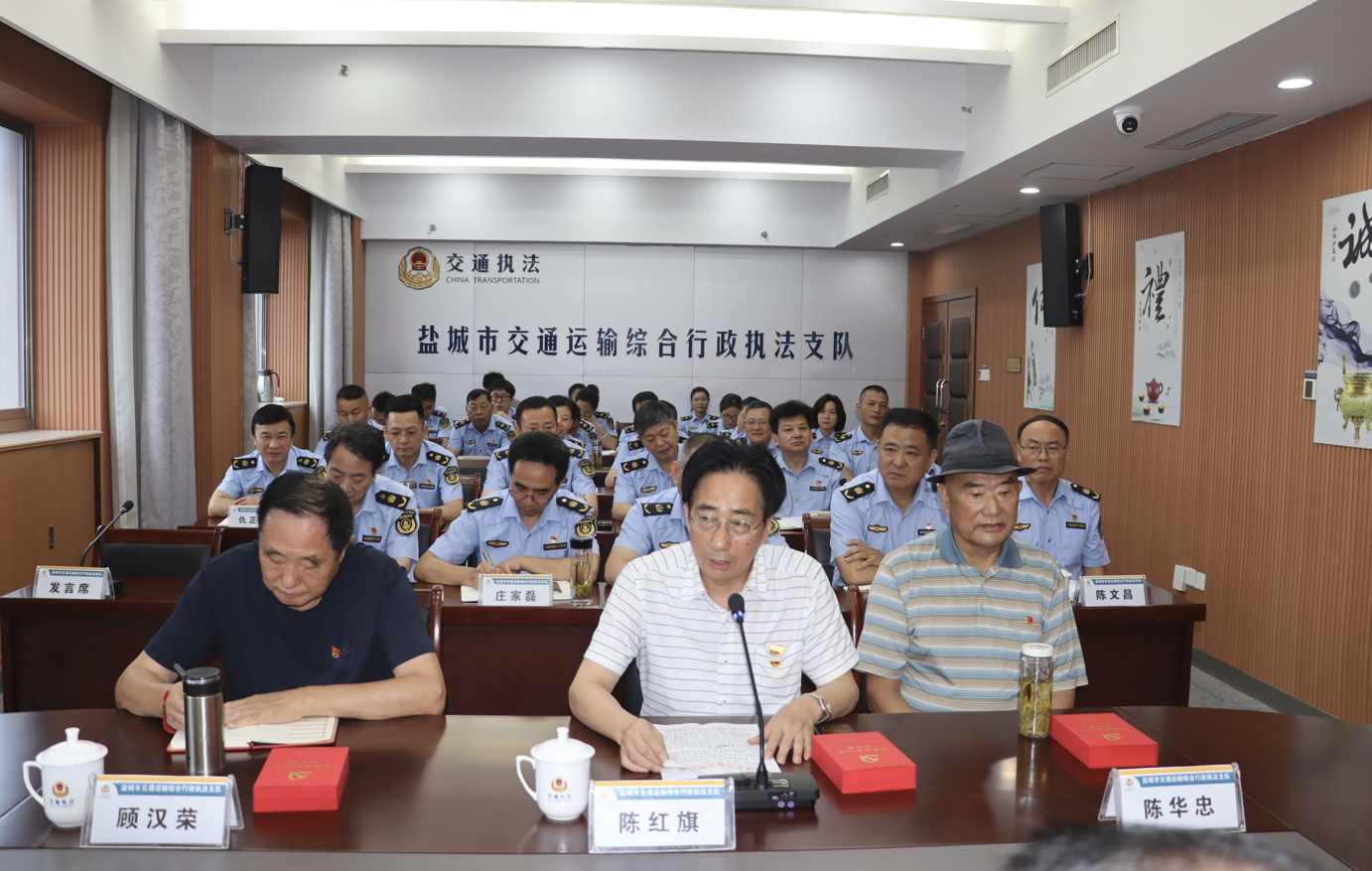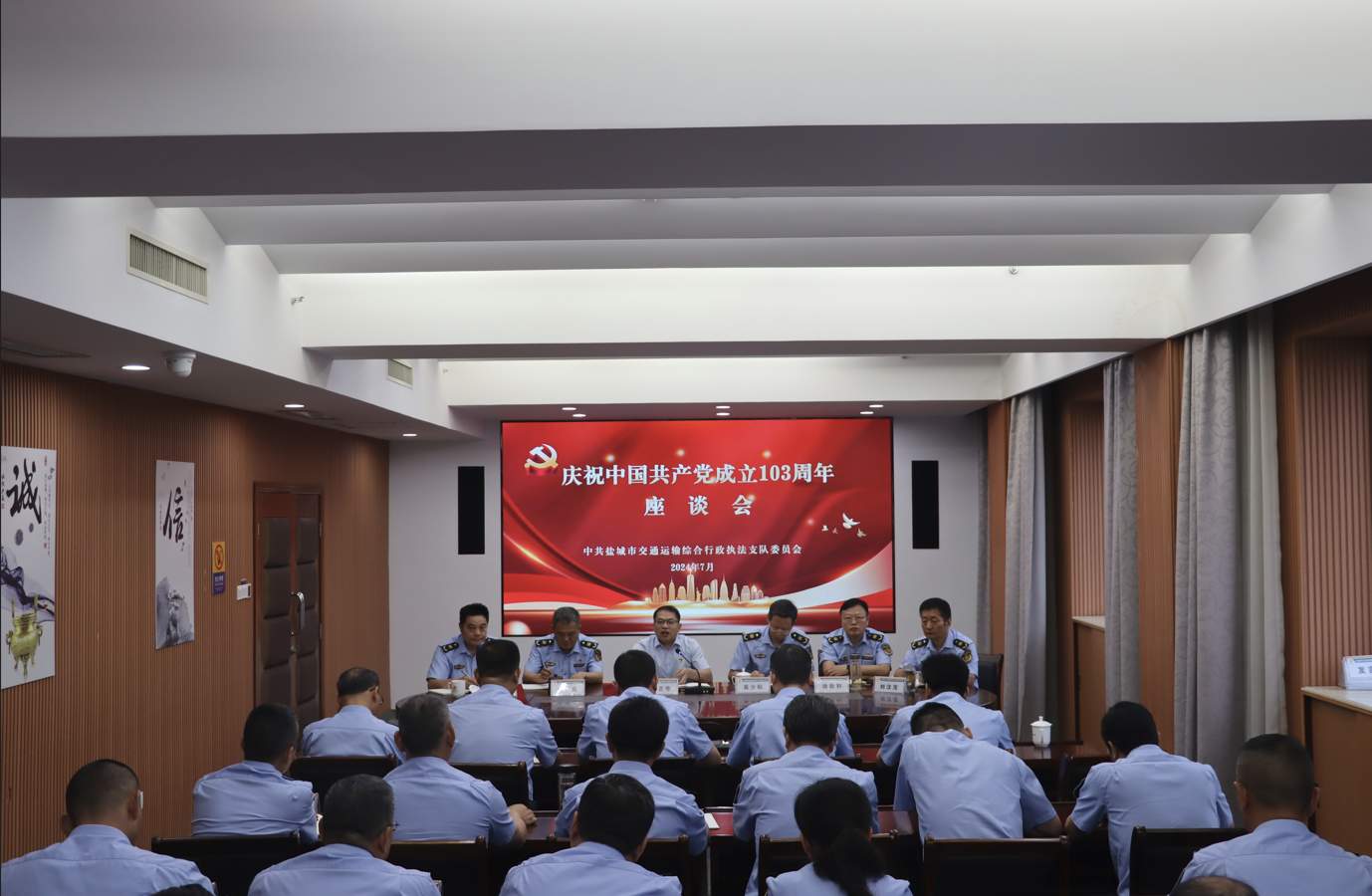 江蘇省鹽城市交通綜合執(zhí)法支隊(duì)召開(kāi)慶祝中國(guó)共產(chǎn)黨成立103周年座談會(huì)暨“光榮在黨50周年”紀(jì)念獎(jiǎng)?wù)骂C發(fā)儀式
