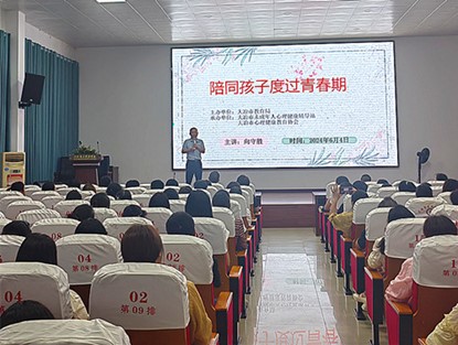 為進(jìn)一步提升師生和家長心理健康知識水平和素養(yǎng),營造關(guān)心關(guān)注、積極支持參與未成年人心理健康教育的良好社會氛圍。6月4日,借開展第二屆湖北省未成年人心理健康教育宣傳月活動之契機(jī),大冶市東風(fēng)路學(xué)校利用晚自習(xí)時間,特邀一級心理咨詢師、大冶二中副校長向守勝為該校七、八年級共184名學(xué)生家長作了一堂主題為《陪同孩子度過青春期》家庭教育知識講座。