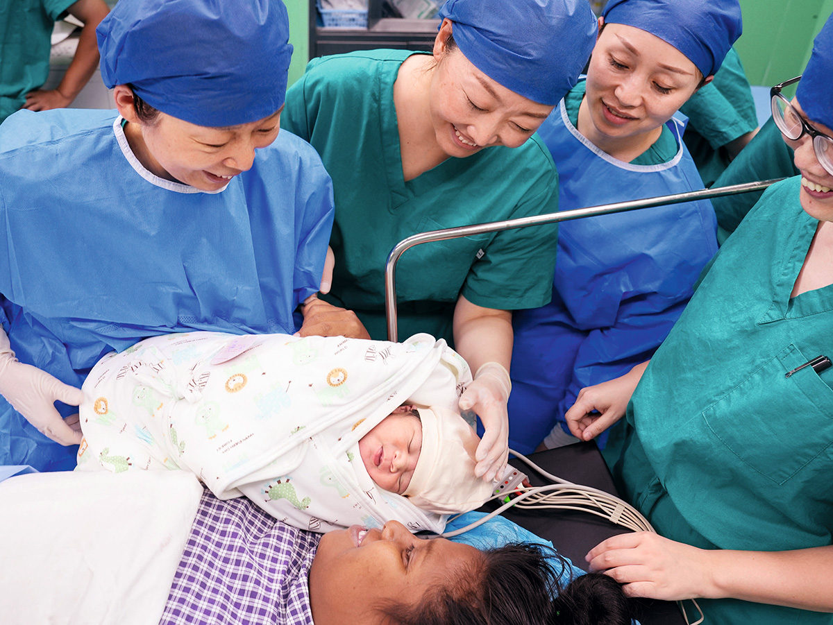 為了改變這一被動(dòng)局面,救援隊(duì)決定主動(dòng)發(fā)聲,引導(dǎo)媒體,盡可能地把中國救援隊(duì)到來的消息擴(kuò)大范圍傳播給受災(zāi)民眾。與此同時(shí),救援隊(duì)將救援物資快速轉(zhuǎn)移到陸地上,就地搭建起前置野戰(zhàn)醫(yī)院,深入到群眾當(dāng)中,消毒,走訪,發(fā)藥,巡診,以實(shí)實(shí)在在的工作消除了人們心頭的疑慮,取得了全然的信任。僅兩周左右的時(shí)間,救援隊(duì)通過多措并舉,面向周邊200多公里的民眾開展救援,共進(jìn)行了44臺(tái)手術(shù),接診了2000多名傷病人員,還在船上接生了4個(gè)“和平寶寶”。