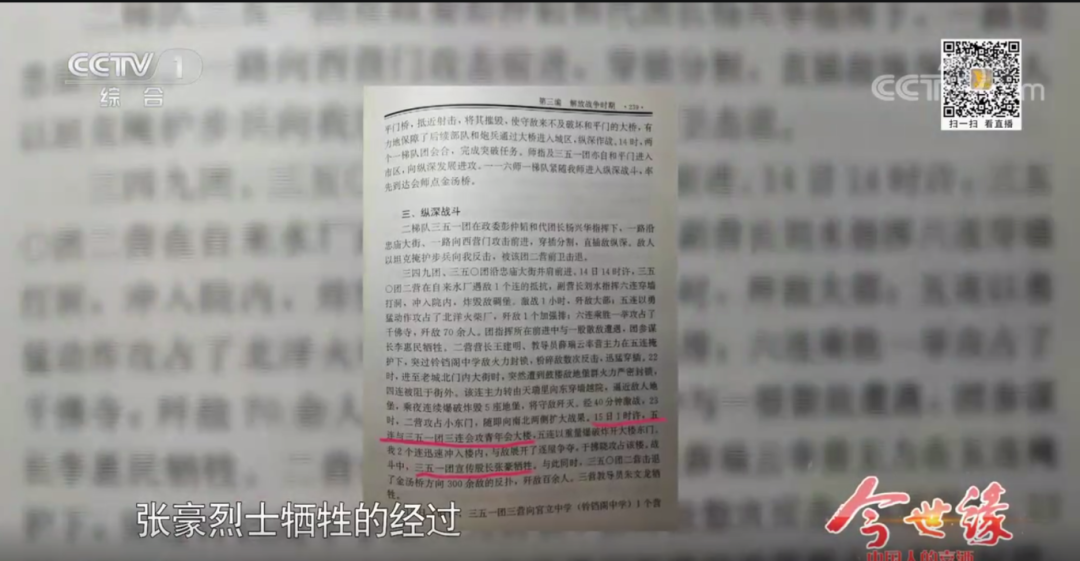 我找到這本回憶錄,小心地翻到天津戰(zhàn)役的章節(jié)。張豪烈士的英名、形象和事跡在老政委的筆下栩栩如生,躍然紙上。一下感覺如釋重負(fù),豁然開朗。