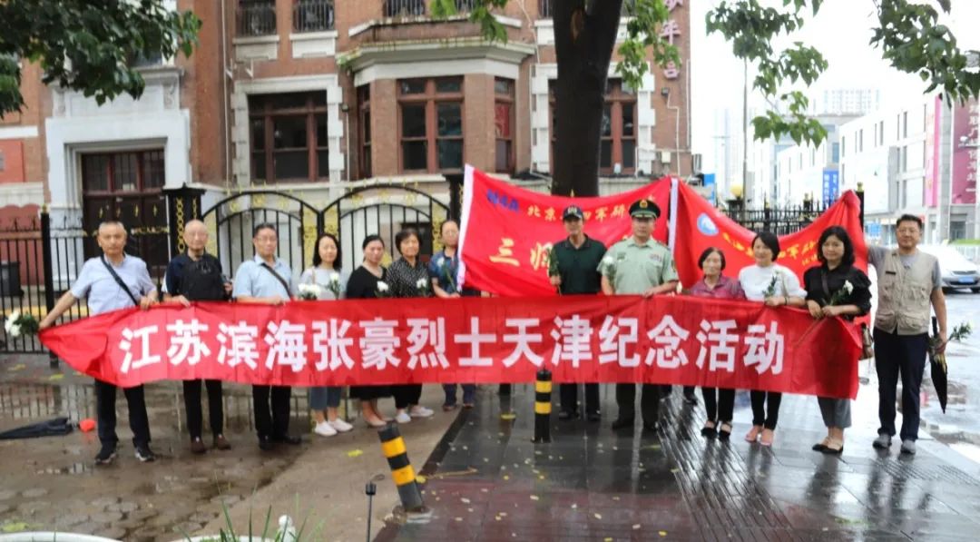 2023年6月28日,原39軍117師老部隊(duì)領(lǐng)導(dǎo)、北京、濱海新四軍研究會(huì)代表和到張豪烈士親人,冒雨到張豪犧牲地天津青年會(huì)大樓紀(jì)念。