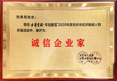 2021年12月,安慶市工商業(yè)聯(lián)合會與安慶市新聞傳媒中心聯(lián)合授予劉承亮為“安慶市誠信企業(yè)家”稱號。