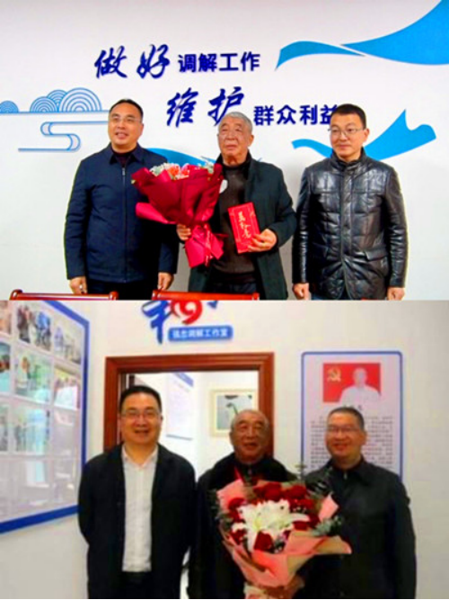 在春節(jié)時(shí)間縣領(lǐng)導(dǎo)到其辦公室慰問吳強(qiáng)忠?!澳暧夤畔∠﹃柤t,情系調(diào)解樂其中,為民化解千千結(jié),心馳神往意更濃”。當(dāng)事人送上鮮艷的錦旗上,代表著慶元老百姓心聲的話語,對吳強(qiáng)忠一輩子為黨、為民、為事業(yè)不忘初心忠誠堅(jiān)守?fù)?dān)當(dāng)?shù)恼鎸?shí)寫照。在浙江慶元的大街小巷,吳強(qiáng)忠這個(gè)名字,就像一棵扎根在百姓心中的大樹,穩(wěn)穩(wěn)地守護(hù)著這片土地的安寧與和諧。