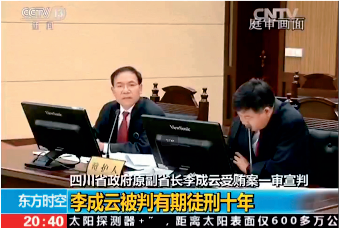 鐘遠(yuǎn)人律師代理的李成云受賄案被央視報(bào)道畫面