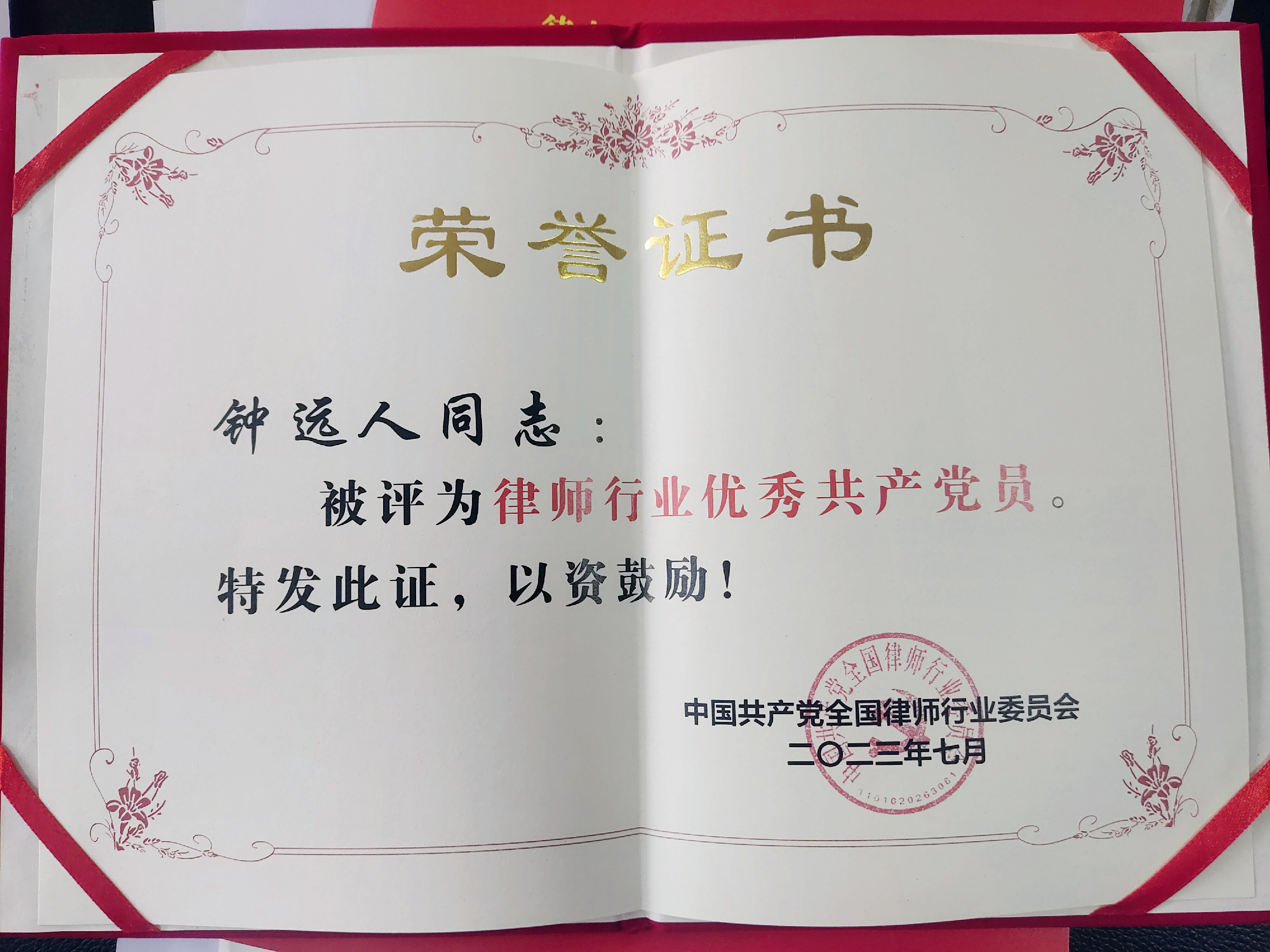 正是憑借一言九鼎的誠(chéng)信,使鐘遠(yuǎn)人終于贏得了客戶,贏得了團(tuán)隊(duì),贏得了“貴州黔信律師事務(wù)所”這塊金字品牌。其律所被評(píng)為貴州省優(yōu)秀律師事務(wù)所,2021年律所被全國(guó)政法隊(duì)伍教育整頓中央第十三督導(dǎo)組定為聯(lián)系點(diǎn),所在黨支部被全國(guó)律師行業(yè)黨委評(píng)為“全國(guó)律師行業(yè)先進(jìn)基層黨組織”,被中共貴州省委評(píng)為“全省先進(jìn)基層黨組織”,2021年還被貴州省委向中央推薦“全國(guó)先進(jìn)基層黨組織”提名。