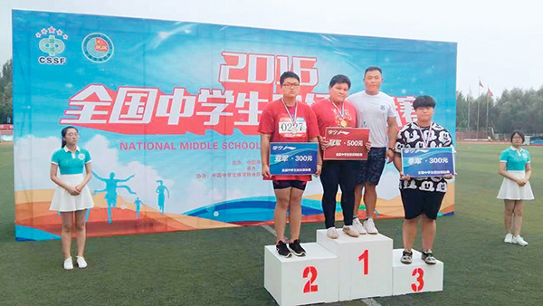 培養(yǎng)的學(xué)生在2016年全國中學(xué)生田徑聯(lián)賽獲得女子鉛球冠軍