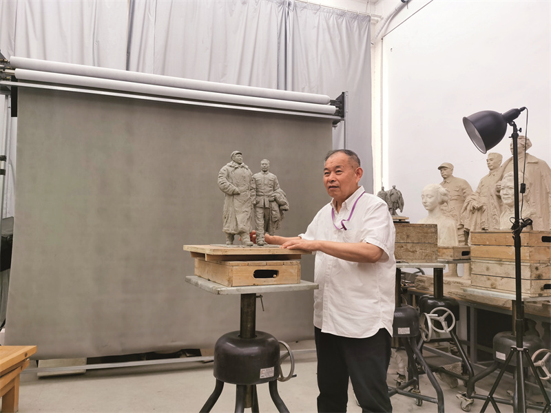 2022年國慶節(jié),吳詩中在“趕考”雕塑的泥稿現(xiàn)場提出要點問題
