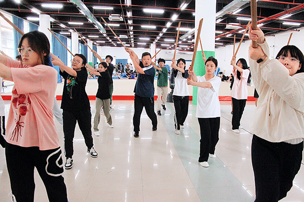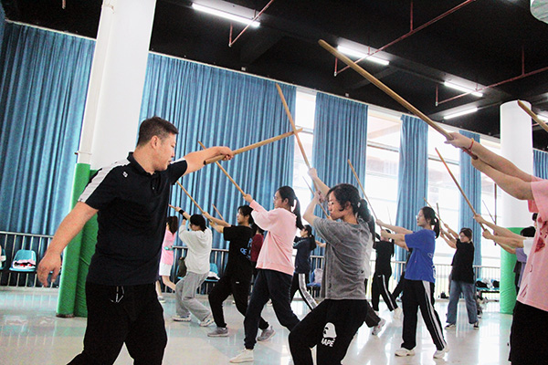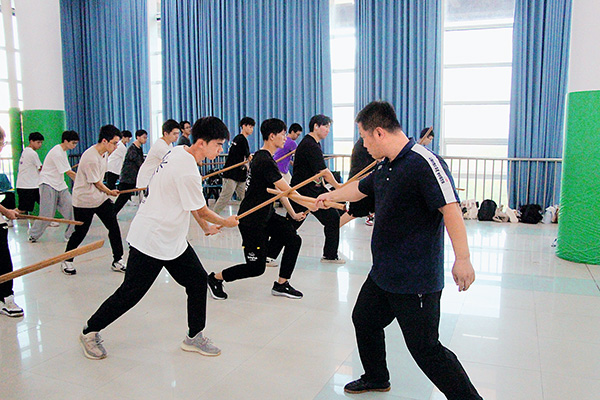 叢濤在指導(dǎo)學(xué)生練習(xí)武術(shù)