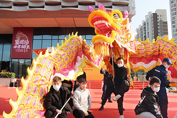 作為一種集武術(shù)、鼓樂、戲曲與龍藝于一身的藝術(shù)樣式,舞龍是人們在喜慶日子用來祈禱風(fēng)調(diào)雨順的重要活動。圖為叢濤作為“龍頭”在舞龍