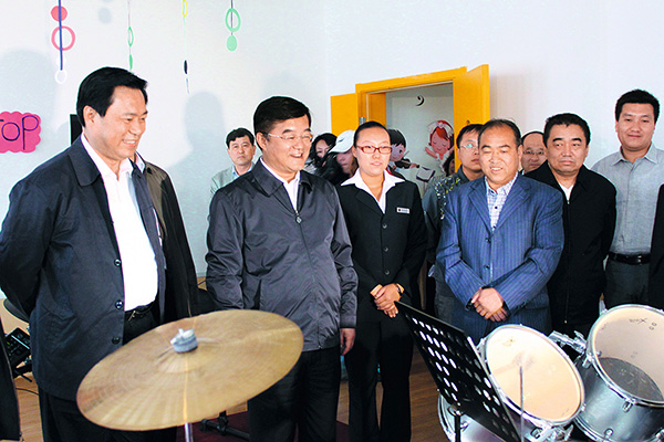 時任河北省省長張慶偉(左二)、河北省副省長王曉東(左一)到成龍幼兒園視察工作