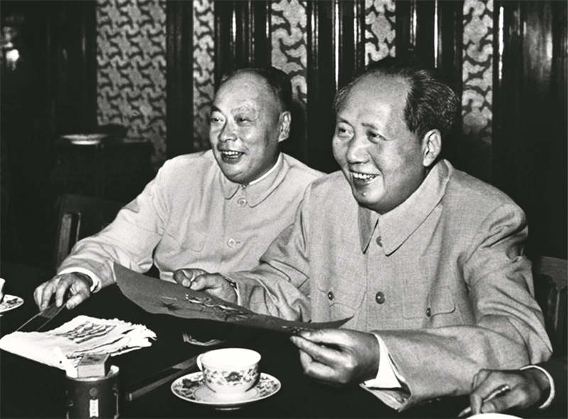 1957年,毛澤東和陳毅在中南海勤政殿接見外賓 侯波攝