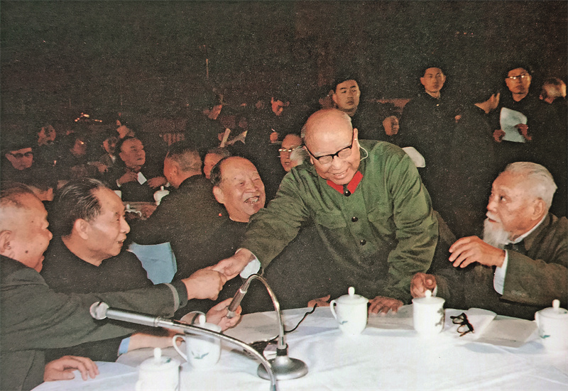 1982 年春節(jié)期間,李先念、胡耀邦、彭真、董其武、胡厥文(從左至右) 在一起