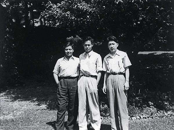 1947年,朱光亞在美國密歇根大學(xué)研究生院學(xué)習(xí)時留影(左起李政道、楊振寧、朱光亞)