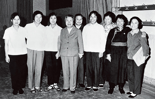 1975年,鄧穎超在第四屆全國人代會上同女勞模們在一起