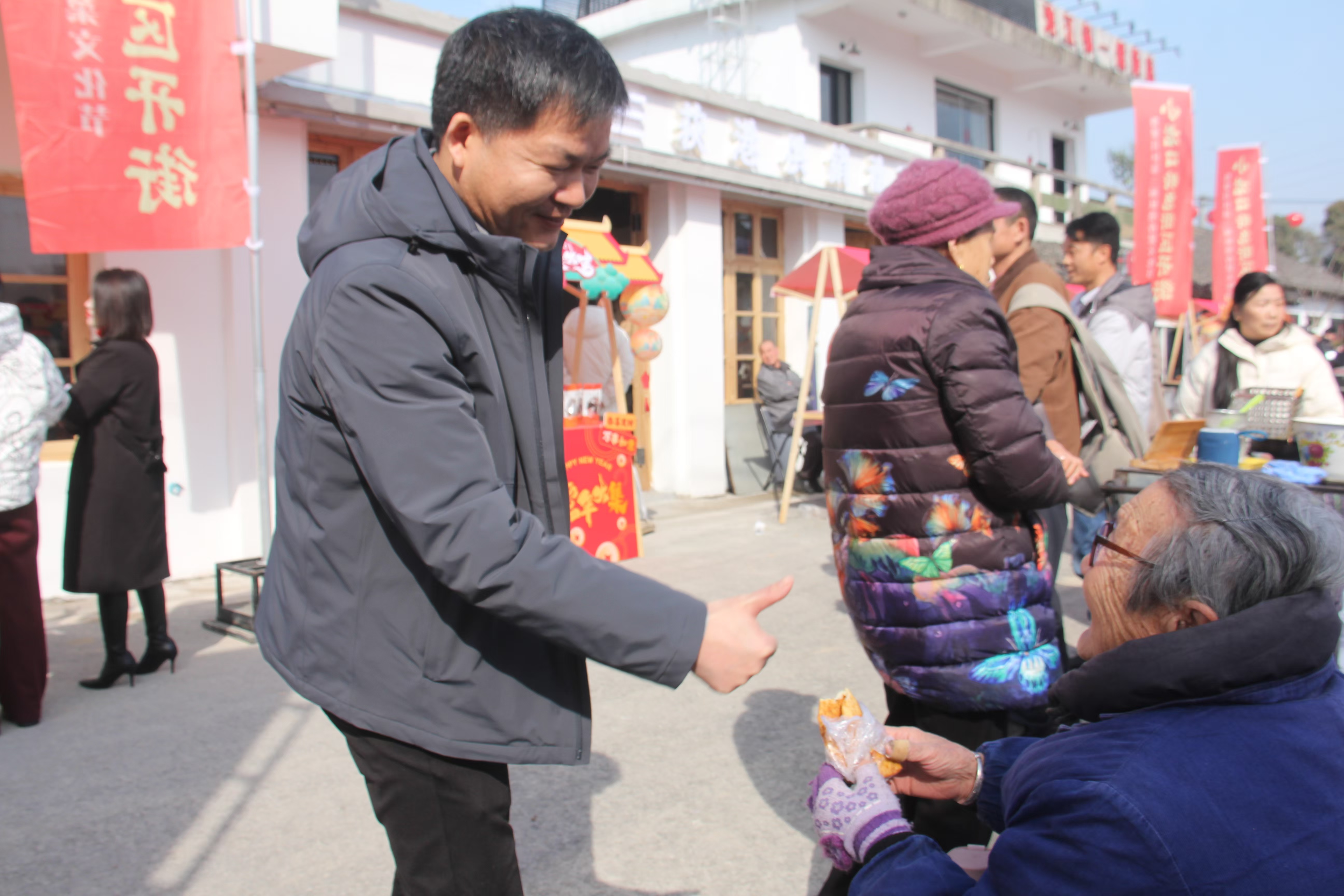 2025年1月21日,小龍口特色街區(qū)開街儀式暨繁昌區(qū)第三屆荻港香菜文化節(jié)在蕪湖市繁昌區(qū)荻港鎮(zhèn)新河村小龍口隆重舉行。在現(xiàn)場,鎮(zhèn)長金賢東與村民親切交流,聊起了家常。當這位95歲的村民老人說道“國家政策好,街開到農(nóng)村”時,金鎮(zhèn)長為她豎起了大拇指點贊。并祝老人健康長壽、生活幸福!