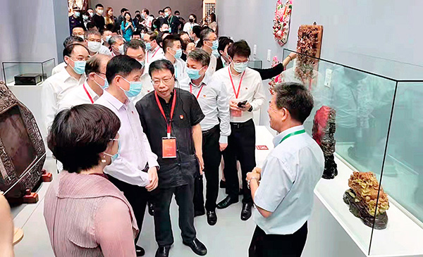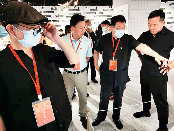 2021年在“百年百藝·薪火相傳”——中國傳統(tǒng)工藝邀請展上,邱春林給領(lǐng)導和嘉賓講解展品