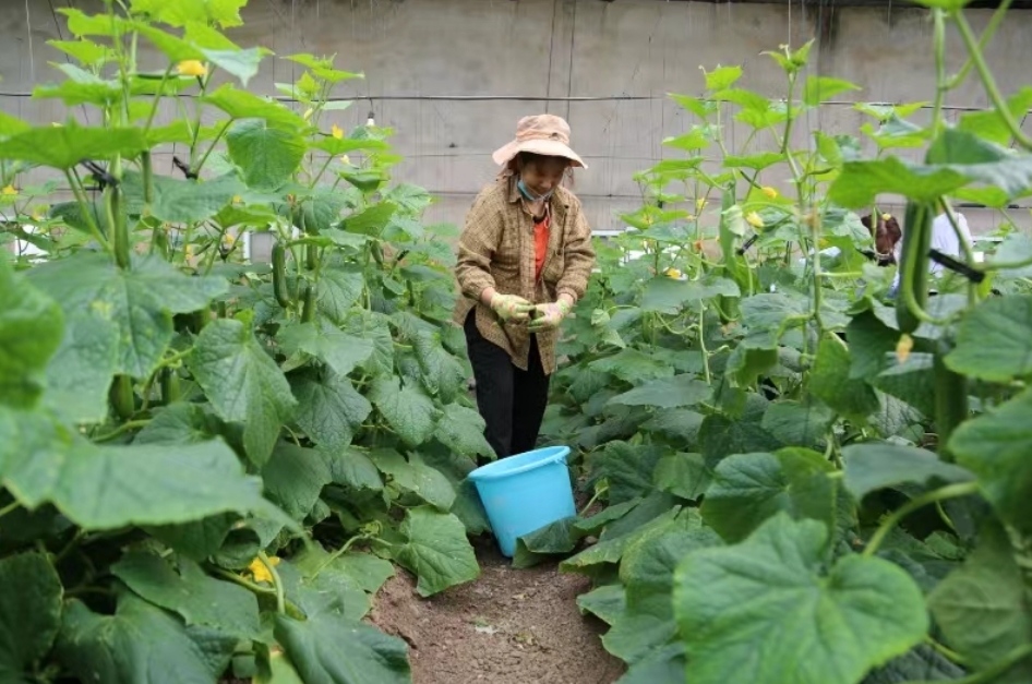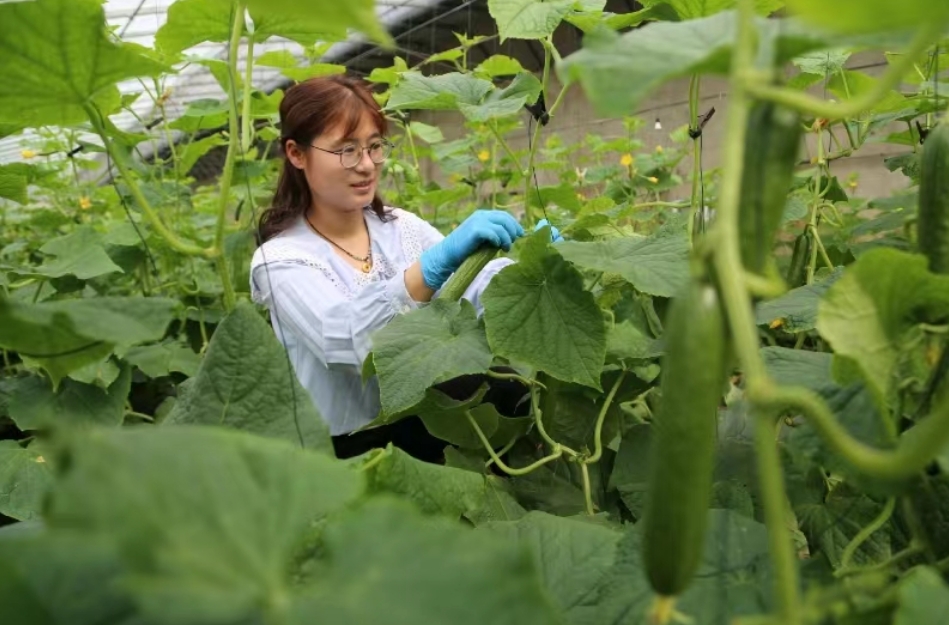 走進(jìn)園區(qū)的1號(hào)溫室大棚,四名女工正在水果黃瓜地里彎腰采摘。一株株嫩綠的藤蔓上,嬌小的水果黃瓜“頭”戴黃花,非常喜人。大家邊走邊選,不一會(huì)兒水果黃瓜就裝滿了一桶?!斑@個(gè)工作既是力氣活,又是技巧活?!眻@區(qū)工作人員竇雙雙介紹說,采摘水果黃瓜要用巧勁兒,否則容易傷了藤蔓和根,影響正常生長(zhǎng)。