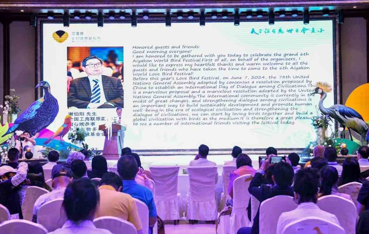 開(kāi)幕式上,全國(guó)工商聯(lián)原副主席、國(guó)務(wù)院參事、中國(guó)生物多樣性保護(hù)與綠色發(fā)展基金會(huì)理事長(zhǎng)謝伯陽(yáng)先生發(fā)表了熱情洋溢的致辭,他強(qiáng)調(diào)鳥(niǎo)類是自然生態(tài)的重要組成部分,保護(hù)鳥(niǎo)類就是保護(hù)我們共同的家園。他宣布第六屆“6·17艾雅康世界愛(ài)鳥(niǎo)節(jié)”正式開(kāi)幕,標(biāo)志著全球鳥(niǎo)類保護(hù)事業(yè)邁入了新的階段。
