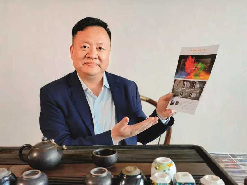 “玻顯投影”研制者金躍剛先生在介紹新品