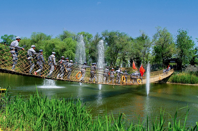 據(jù)了解,“重走長(zhǎng)征路”活動(dòng)項(xiàng)目從制定方案、規(guī)劃設(shè)計(jì)到投入建設(shè),全程都是第六埠村自力更生、自主設(shè)計(jì)建設(shè)而成。項(xiàng)目的地域范圍大約1000畝,沒有占用一分國家耕地,就地勢(shì)打造,就地取材。其中暗堡、浮橋、鐵索橋、雪山等設(shè)計(jì)均沒有對(duì)生態(tài)造成任何破壞,可謂自然而然、如實(shí)還原。