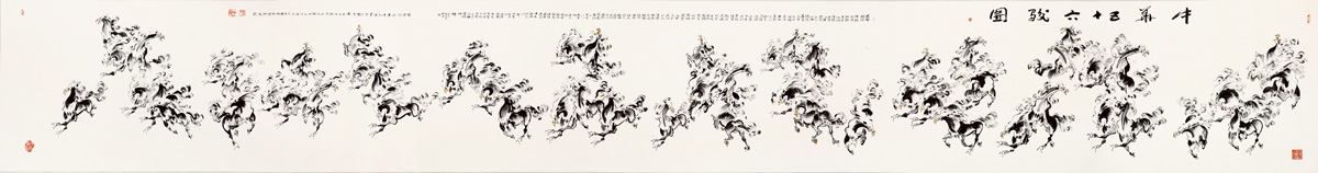 為中央軍委八一大樓捐贈巨幅作品《中華五十六駿圖》
