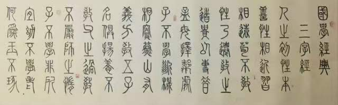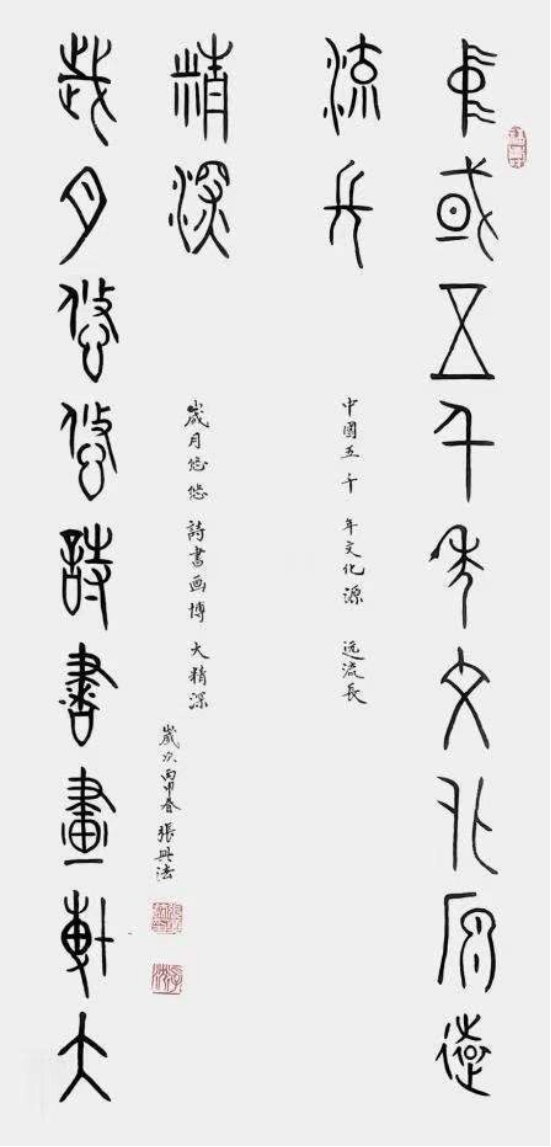 他自幼酷愛書法, 常年臨池不輟, 將書法藝術(shù)作為自己的畢生追求.師法孫星衍、鄧石如、吳昌碩、張永明等大家,收獲頗豐,尤其對篆書創(chuàng)作頗有造詣, 其書法字體修長、剛?cè)嵯酀?、渾厚有?