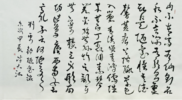 2024 年是其藝術(shù)成果豐收之年:2 月,《彩色書法字體》獲國家版權(quán)局登記保護(hù);4 月,參展第 36 回全日中展(東京書畫藝術(shù)大展),促進(jìn)中日文化藝術(shù)交流;5 月,作品入選 “傳新 全國書畫名家邀請展”(中國美術(shù)出版總社大廈人美美術(shù)館);6 月,作品《楓橋夜泊》入展 “中國氣韻 以藝通心” 書畫名家邀請展(北京民族文化宮);8 月,出版《潘大江國畫作品選?中國高等藝術(shù)院校名師教學(xué)范本》,為書畫教育提供實踐參考。此外,作品還入編《翰墨傳奇 藝壇巨匠 —— 時代功勛人物》等多部重要藝術(shù)典籍,被海內(nèi)外藏家與機構(gòu)關(guān)注收藏。
