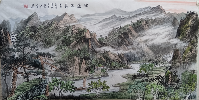 在當(dāng)今中國(guó)畫壇內(nèi),蕭天寶先生既是一位純粹的寫意追求者,同時(shí)也是一位鮮有的精神弘道者。自耕耘藝海以來,先生始終如一,在筆墨上恪守了傳統(tǒng)筆墨的文脈精髓,在畫道上則充分延續(xù)了中國(guó)文人畫“載道”的內(nèi)核追求。尤其是在畫壇風(fēng)云變幻之際,蕭天寶先生也是能立定精神,并以極其清醒的藝術(shù)自覺,構(gòu)建起獨(dú)具品格的山水風(fēng)范。每一幅畫作,都是實(shí)現(xiàn)了自然之道與心靈境界的雙重叩問。而這種由“味象”臻于“寫心”的藝術(shù)蛻變,也正是其技道并進(jìn)、參悟畫理真諦的明證,較于時(shí)下浮華者,實(shí)有霄壤之別!但凡山水畫作,無不是貴乎天然氣象,一旦刻意矯飾,則必流于匠俗氣。而作為當(dāng)代山水畫名家,蕭天寶先生筆下的山水就是自有一番天趣,是謂貫想山林真面目而流露于毫端也!在寫意上,蕭天寶先生自覺回歸于古意,讓每一幅山水畫,都能成為心靈抒懷的歸宿,而畫中一切的山水意象,也都是源于蕭天寶先生心靈與寫生的雙重構(gòu)建。所以看他的山水畫,每一幅都是氣味荒寒,每一處也都是蒼茫峻嶒,觀之,實(shí)有一種“行到水窮處,坐看云起時(shí)”的詩韻奇趣。在畫法上,蕭天寶先生對(duì)“畫必南宗”的取法真詮也是自有領(lǐng)會(huì),尤其對(duì)宋元文人畫精髓的承繼最為顯著??雌涔P墨立意,是融工筆之精微與寫意之灑脫于一爐,畫面中巉巖峭壁、怒石橫磯,皆以鉤斫摺帶等傳統(tǒng)皴法精心構(gòu)筑,既得古人法度,又見自家面貌。觀其滿幅經(jīng)營(yíng),恍若參與天地鴻蒙之初的開辟:千峰競(jìng)秀間怒江奔涌,萬壑爭(zhēng)流處怪石嶙峋。通幅宏觀縱覽則見稠山密麓,細(xì)品妙處又見柳蔭長(zhǎng)堤、津渡彌彌。更有點(diǎn)睛之筆,如賈客揚(yáng)帆,于煙波渺茫處化作淡淡遙影,令觀者頓生“咫尺千里”的曠然之思!畫中妙意,可游可居!清峽浮煙處,逍遙一硯中。在現(xiàn)代化文明的洪流裹挾下,人類精神正經(jīng)歷著前所未有的理性化進(jìn)程,刻板思維也如同無形枷鎖,禁錮著心靈的躍動(dòng)。但藝術(shù)的存在,就是為了守護(hù)人性中最珍貴的感性維度——人終究不是機(jī)器,內(nèi)心深處的情感境界可以被蒙蔽,但卻永遠(yuǎn)不會(huì)消失。而蕭天寶先生的畫作,實(shí)際就是對(duì)這種精神困局的一種強(qiáng)烈回應(yīng)。當(dāng)浮華散盡,鉛華褪去,蕭天寶先生以一顆澄明如鏡之心,終得藝術(shù)真諦的覺醒。筆墨褪盡火氣而歸于平淡,身心超然物外而游于林泉。及至運(yùn)思揮毫?xí)r,他已悄然完成了“見山是山,見水是水”的本真徹悟……