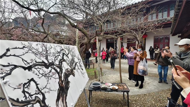 踏著千年青石古道,許偉清仿佛穿越了時(shí)空。那些曾經(jīng)在這條古道上行走的文人名人——蘇軾、湯顯祖、戚繼光——他們也曾在這里駐足,為梅花寫下不朽的詩(shī)篇。如今,許偉清以畫筆接續(xù)這段文脈,“一筆丹青,繪盡古道梅魂與歲月沉香”。