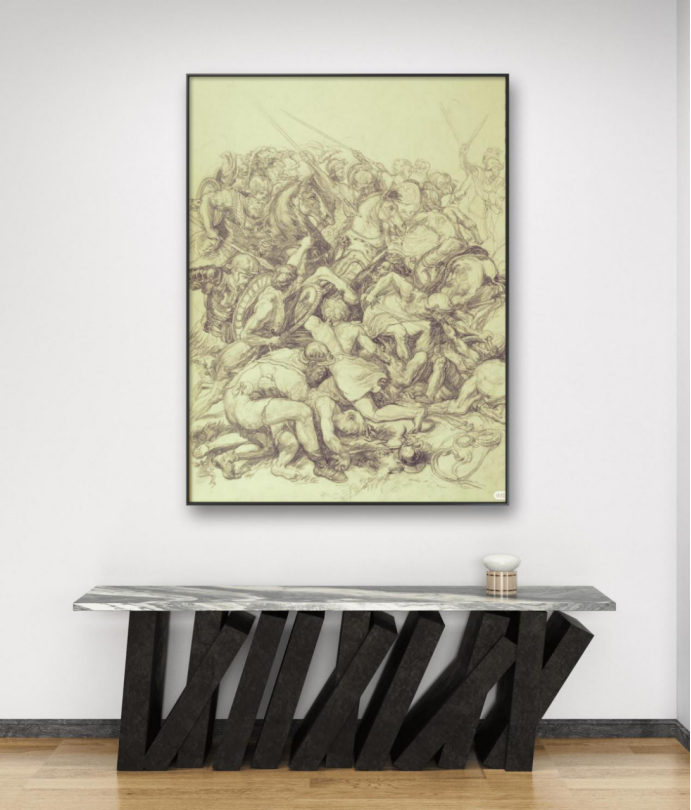 “istoria”一詞,源自希臘,本義為敘事、歷史,在阿爾貝蒂的語境中,它指向一種具有深邃才思、劇場式構圖與深刻寓意的文學史詩性繪畫。達·芬奇亦將這種敘事寓意繪畫奉為圭臬。在古代大師的筆下,“istoria”不是為小眾資本服務的玩物,而是能讓萬民萬眾獲得靈魂洗滌的精神載體。希臘神話中,九位繆斯女神排名前兩位的,正是英雄史詩與歷史的女神——足見在人類文明的源頭,這種宏大的敘事精神便被尊為藝術的最高境界。