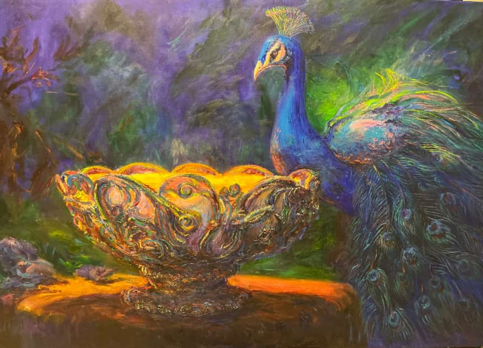 王般若的藝術(shù)實(shí)踐,是一位當(dāng)代畫者對生活美學(xué)的虔誠詮釋。她以筆為舟,渡生活瑣碎,抵美學(xué)彼岸,在畫布上留下了屬于自己的光的語言。這份對藝術(shù)的赤誠,正如她筆下《歲月-豁然之境》所吟詠的那般:“眉絲心間淺淺傳怡情,了然縈縈繞起眼中景;花開花落一年又一年,屆往憶憶只為這磐間-凡間!”