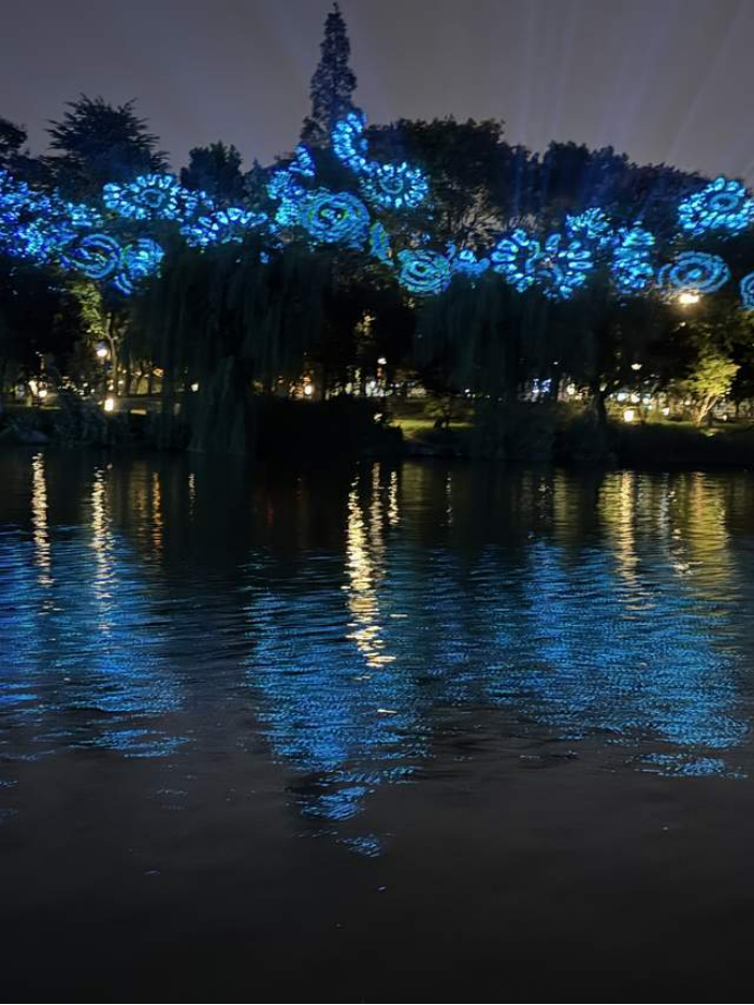 圍繞濠河一圈,意猶未盡;靜謐的燈光從沿岸照亮河流,宛如一座浮在水上的宮殿。它的倒影在水中被拉長、揉碎,又重組,歷史在波光里變得朦朧而生動。張謇先生的雕像靜立在光影中,他凝視的,不再是百年前的荒灘,而是今日這流光溢彩的城。這一刻,博物館的圍墻在視覺上消失了,整條濠河都成了它的展廊,每一道波光都在講述著“中國近代第一城”的往事。