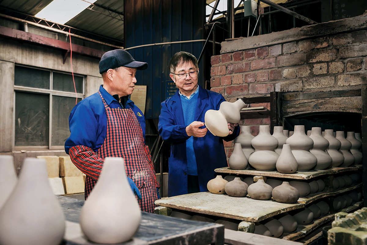 陳富強(qiáng)大師與青年陶藝家吳金澤交流技術(shù)問題