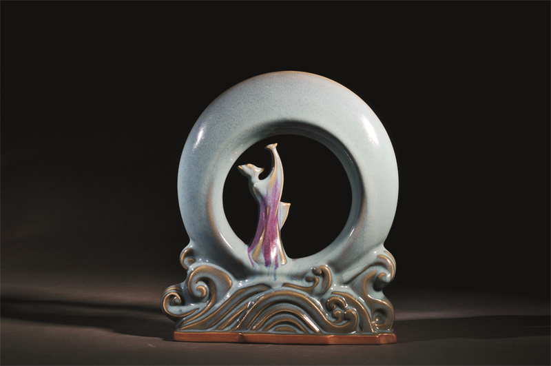2001年為人民大會堂河南廳設(shè)計(jì)鈞窯作品《觀音瓶》;