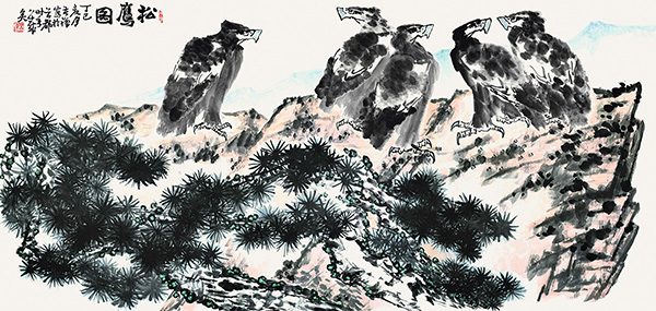 李苦禪作品《松鷹圖》1977年146cm×311cm