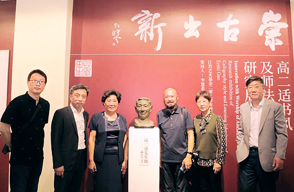 2021年5月18日,在高二適書風(fēng)及師法承傳研究展開幕式暨研討會(huì)上,高二適女兒高可可與《百年巨匠》出品人、總策劃楊京島,《百年巨匠——高二適》總導(dǎo)演寒冰合影